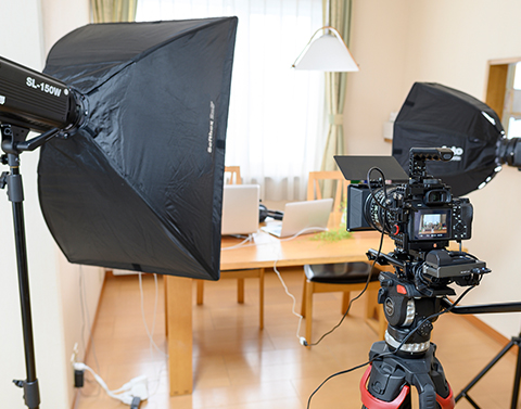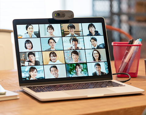 映像は極力ビデオカメラ等の撮影機材を用いることが良いですが、ノートパソコンの場合は備え付きの内部カメラからでも配信可能です。また、大人数で参加する場合は、接続サーバー等の管理が必要になる可能性もあります。